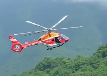Homem em estado grave após desabamento é transferido de helicóptero.